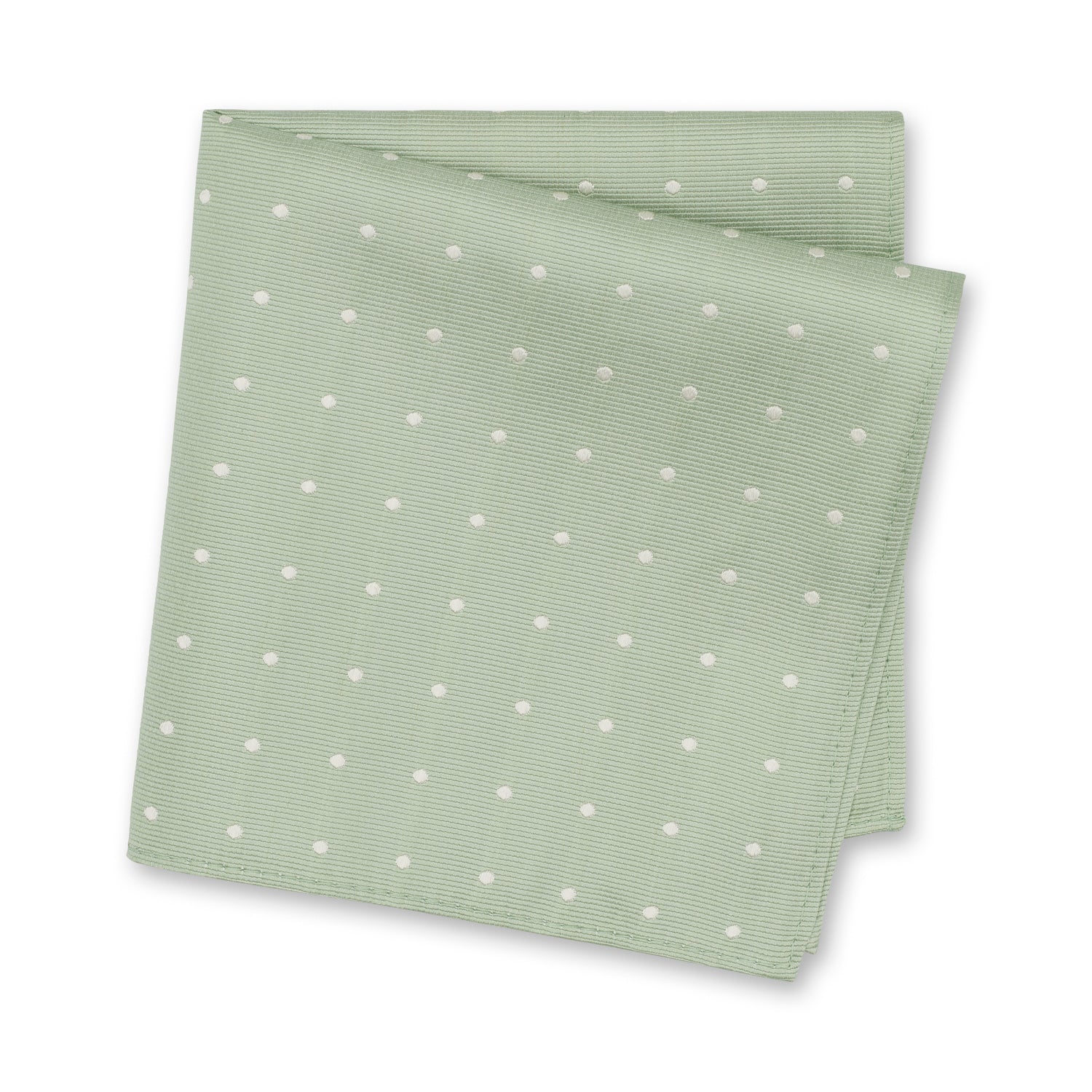 yoghurt Green Polka Dot Silk Handkerchief made using 100% luxury silk with a classic polka dot patterning throughout. 100% Silk