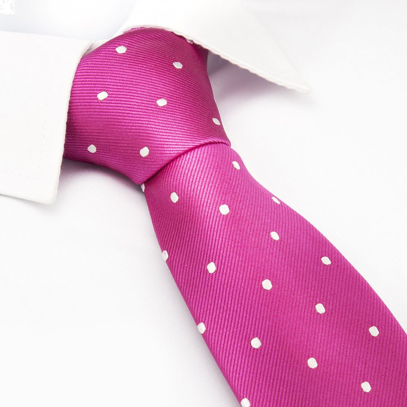 Fuchsia and White Polka Dot Woven Silk Tie - This classic polka tie is a great addition to your tie collection. Made using 100% luxury woven silk and featuring a timeless spotted design. 100% Silk Dimensions: 8.0cm x 148cm