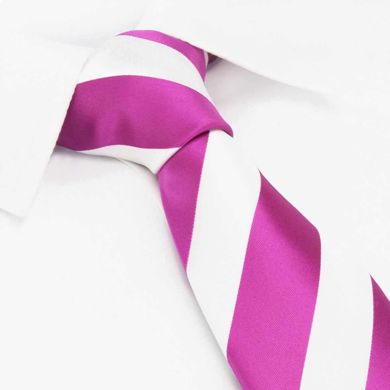 Fuchsia and White Striped Tie - Featuring a classic wide striped patterning throughout and finished to a high standard. 100% Polyester Dimensions: 8.0cm x 148cm