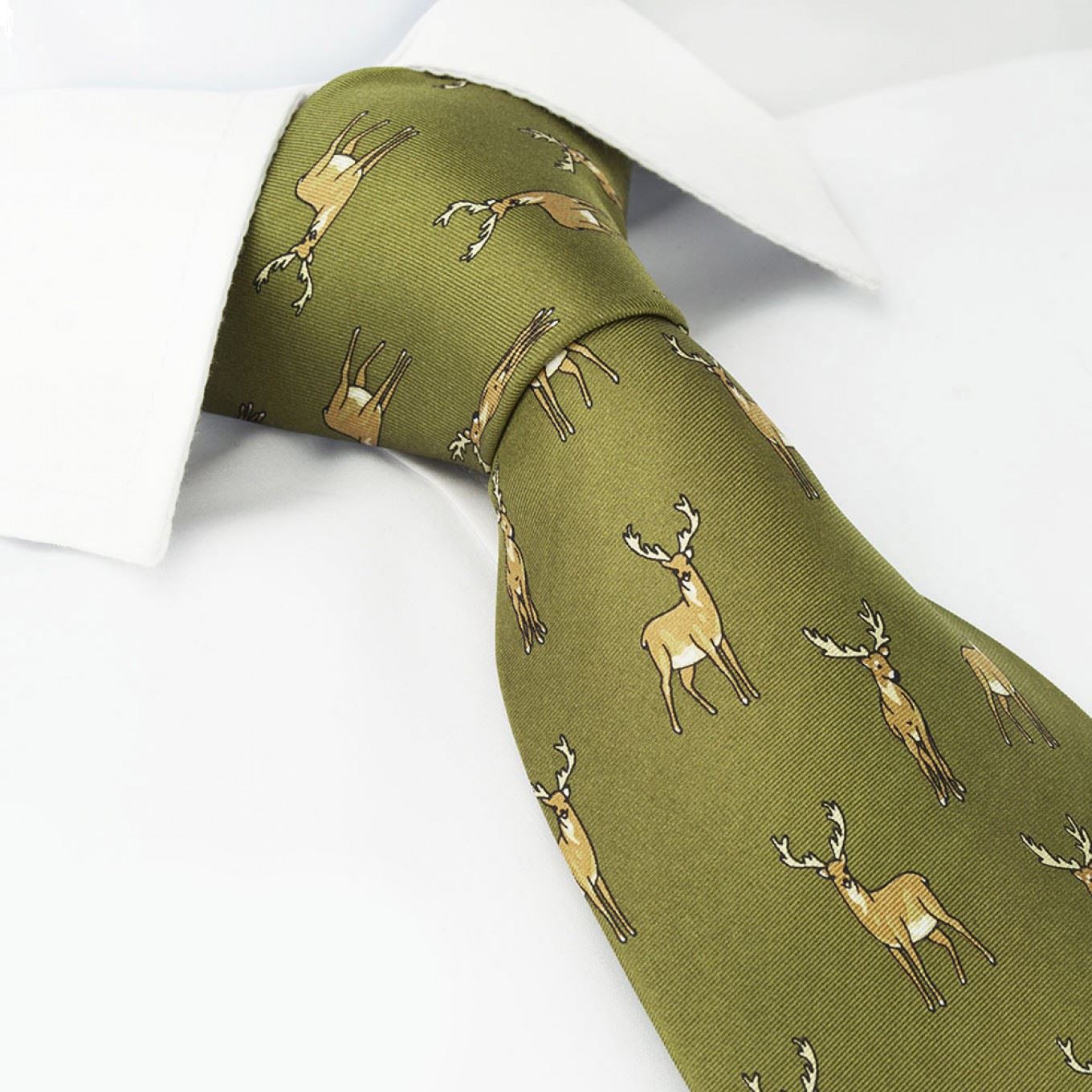 Green Stag Country Silk Tie This luxury green stag silk tie is suitible for business, evening or just casual wear.The 100% silk gives the tie a more textured look, fantastic quality shown throughout. 100% Silk Dimension: 9cm x 149cm