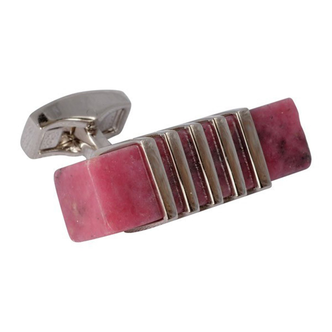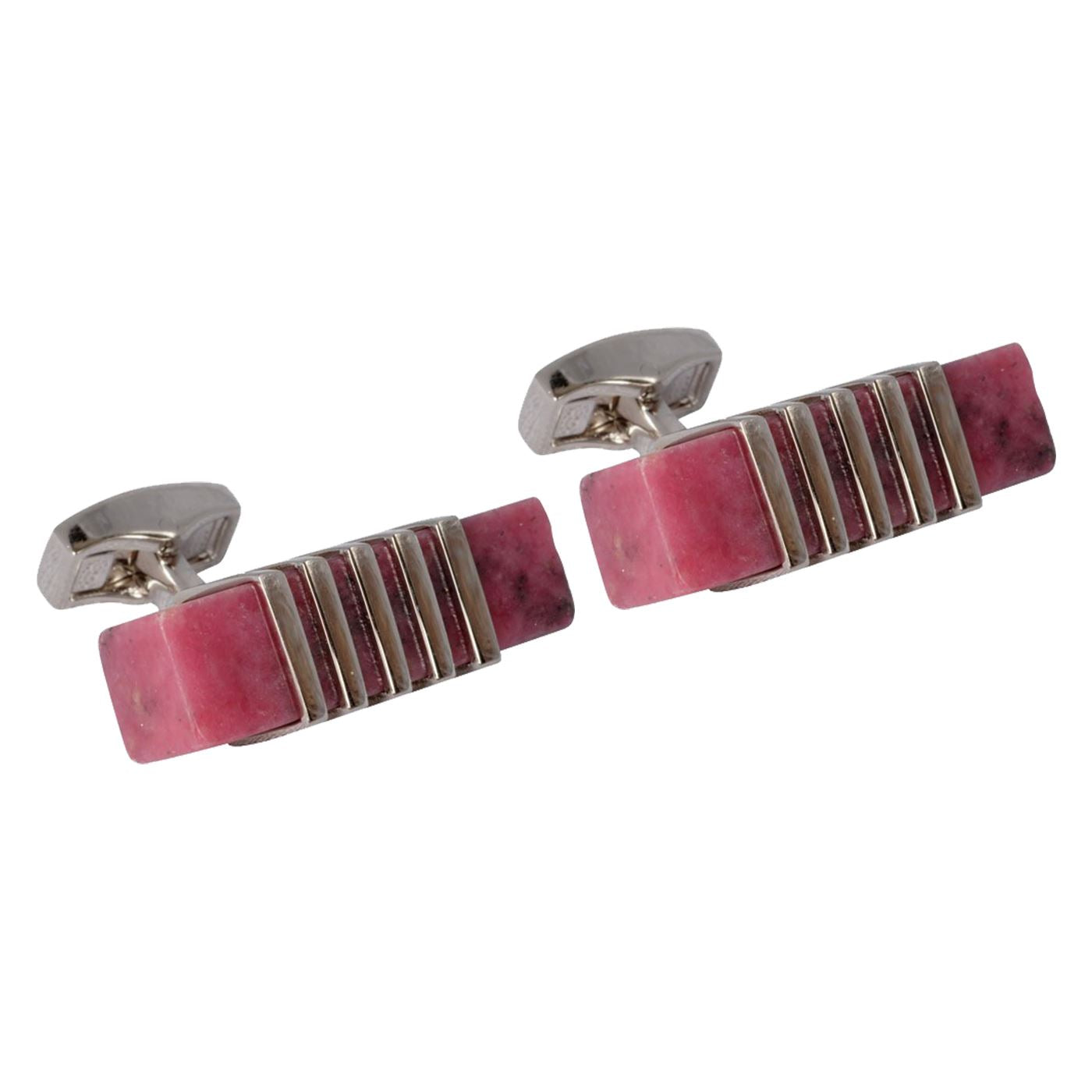 Genuine Rhodonite Stone set on a rhodium cufflink, very good quality pair of cufflinks that will make a very special gift.  Presentation box included.
