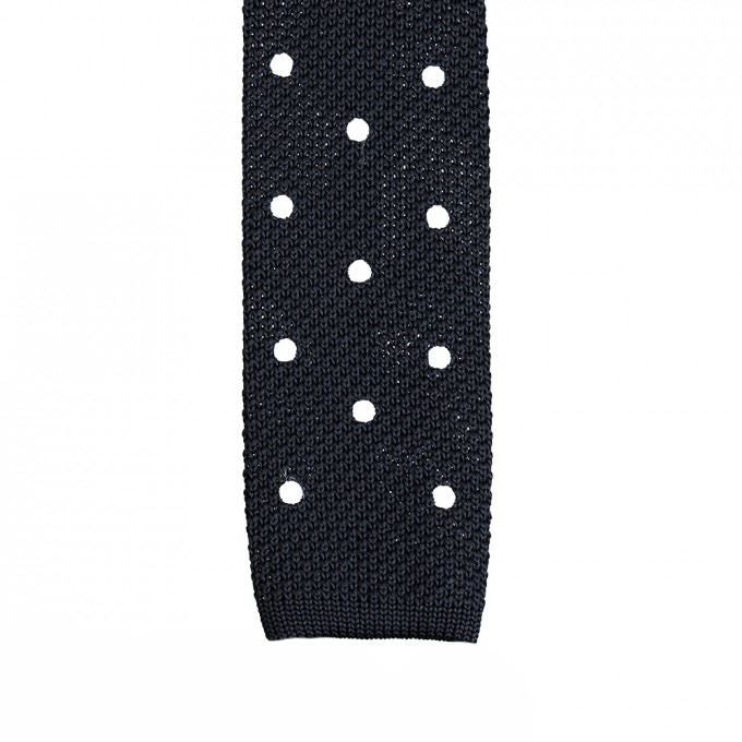 Black Polka Dot Knitted Square Cut Tie Black Polka Dot Knitted Square Cut Tie