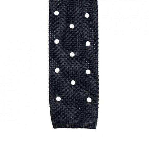 Black Polka Dot Knitted Square Cut Tie - This classic knitted tie is made using a microfibre blend and is hand finished to perfection. Featuring a Black base with White polka dots. Tie Dimensions: 148cm x 5.5cm
