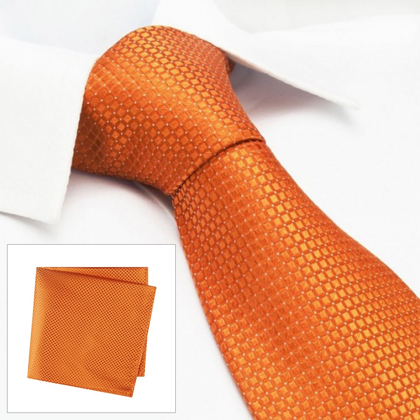 Orange Micro Square Woven Silk Tie & Handkerchief Set