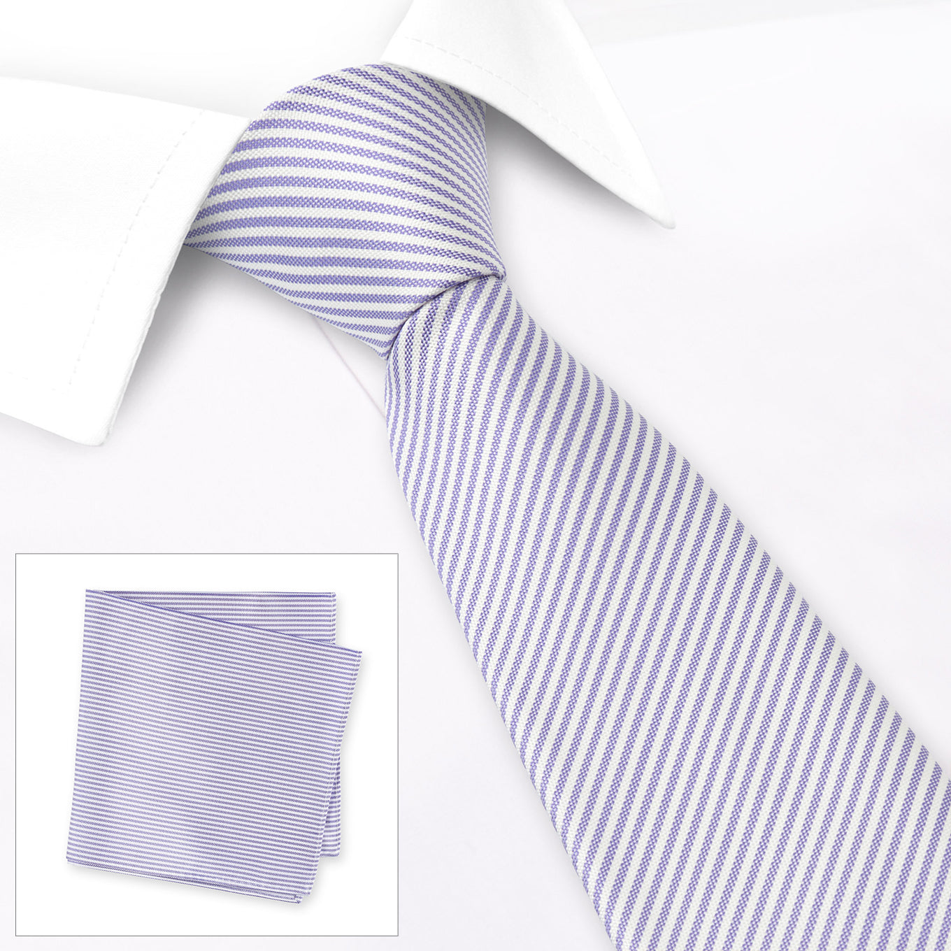 Pastel Lilac & White Thin Stripe Silk Tie & Handkerchief Set