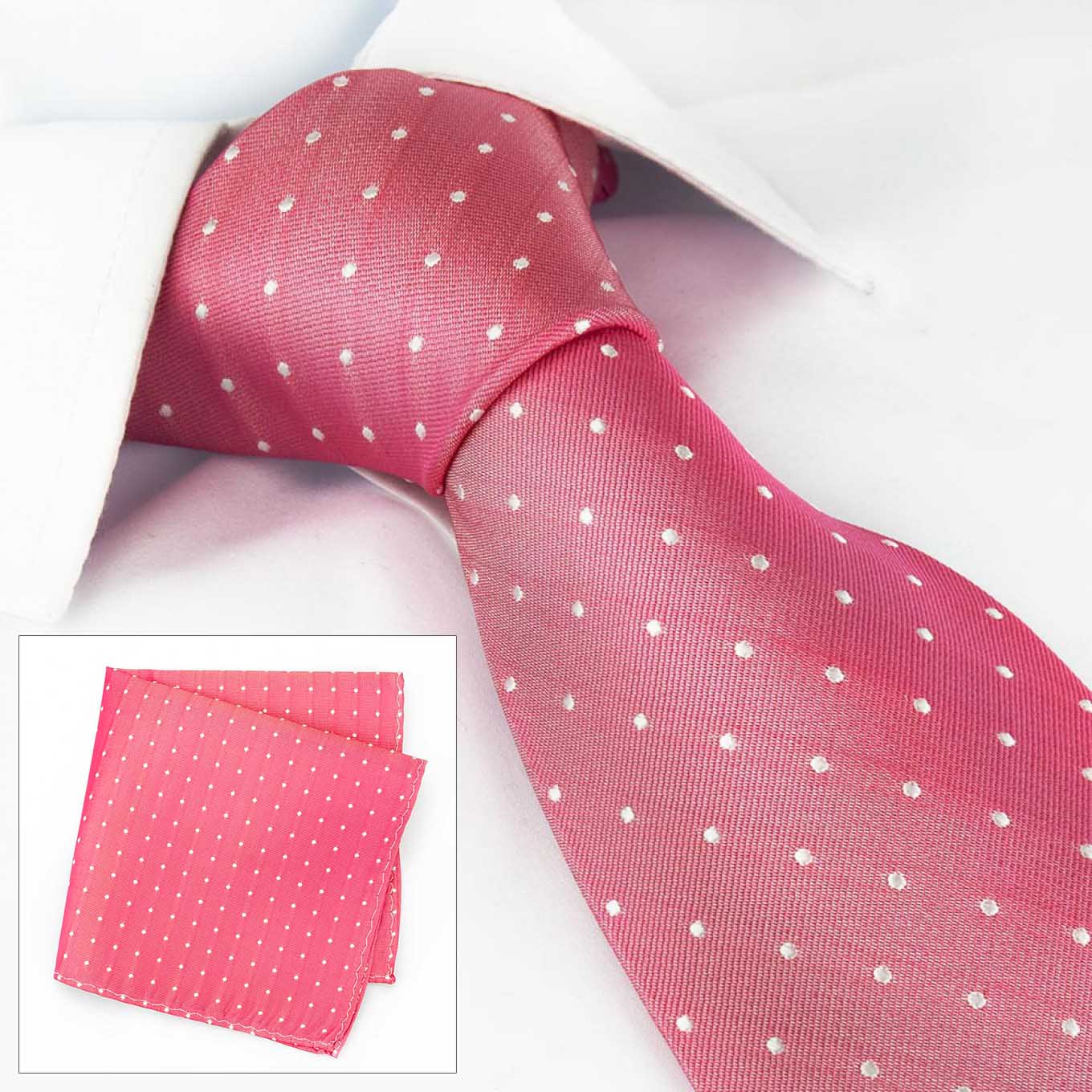 Fuchsia Polka Dot Woven Silk Tie & Handkerchief Set