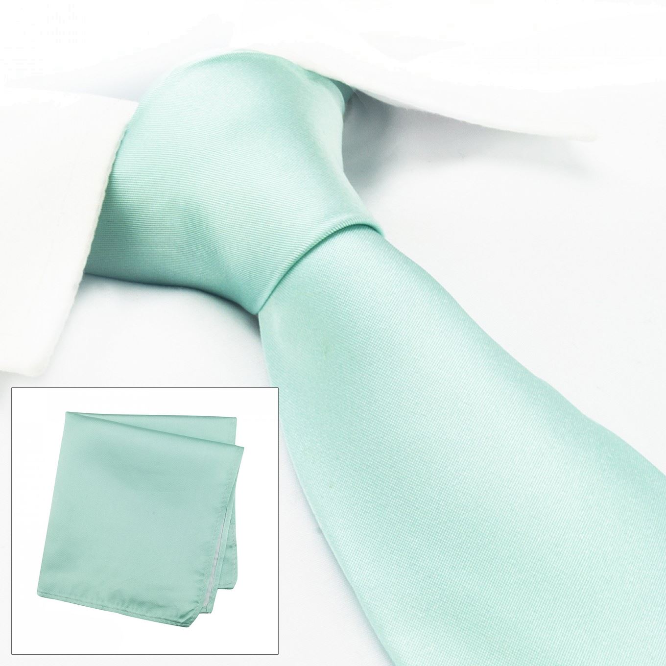 Plain Cyan Silk Tie & Handkerchief Set